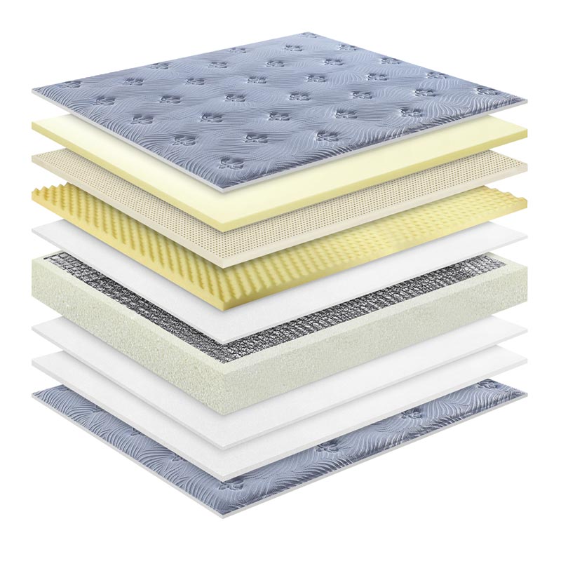 Un colchón híbrido de espuma y resortes de alta densidad es una estructura de colchón diseñada profesionalmente que integra Soporte de resorte de acero con capas de confort de espuma de alta densidad.